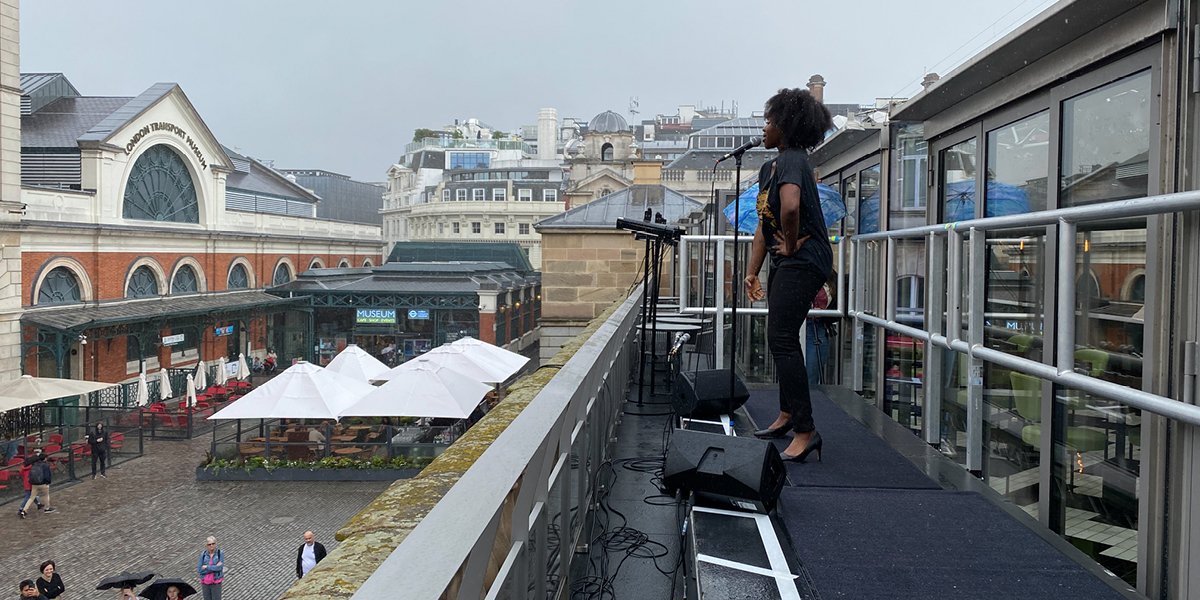 After announcing the performances for this year’s West End LIVE this morning, we kicked the countdown off with a pop-up performance from Tina – The Tina Turner Musical on the rooftop of the iconic covered market in Covent Garden. On the roof of SUSHISAMBA, Aisha Jawando performed a medley of songs from Tina Turner’s iconic catalogue including Proud Mary, We Don’t Need Another Hero and Simply The Best.